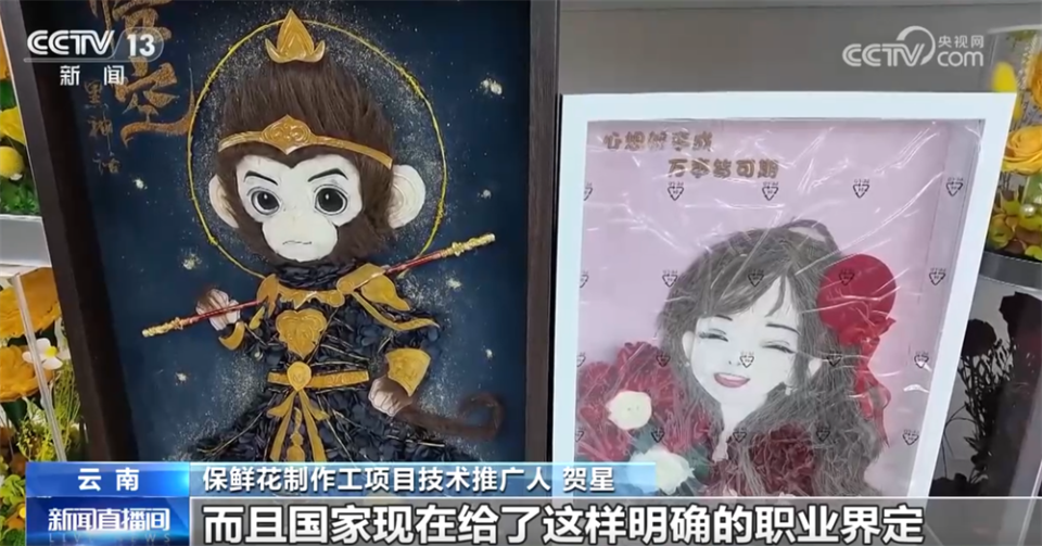 “保鲜花”制作工项目技术推广人贺星称:“‘保鲜花’没有损耗,市场空间无限大,可以服务全球的客户,不管是它的容器还是它的花材,都是可以做到标准化的,而且国家现在给了这样明确的职业界定,这对于整个行业来说都是利好。”