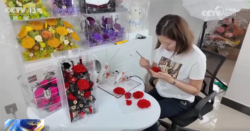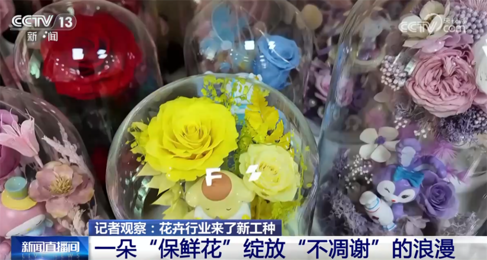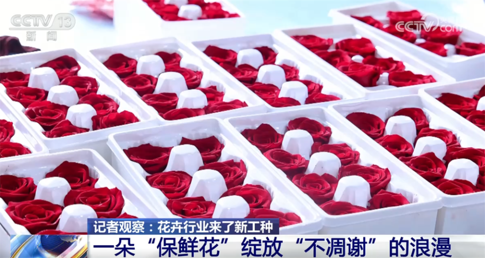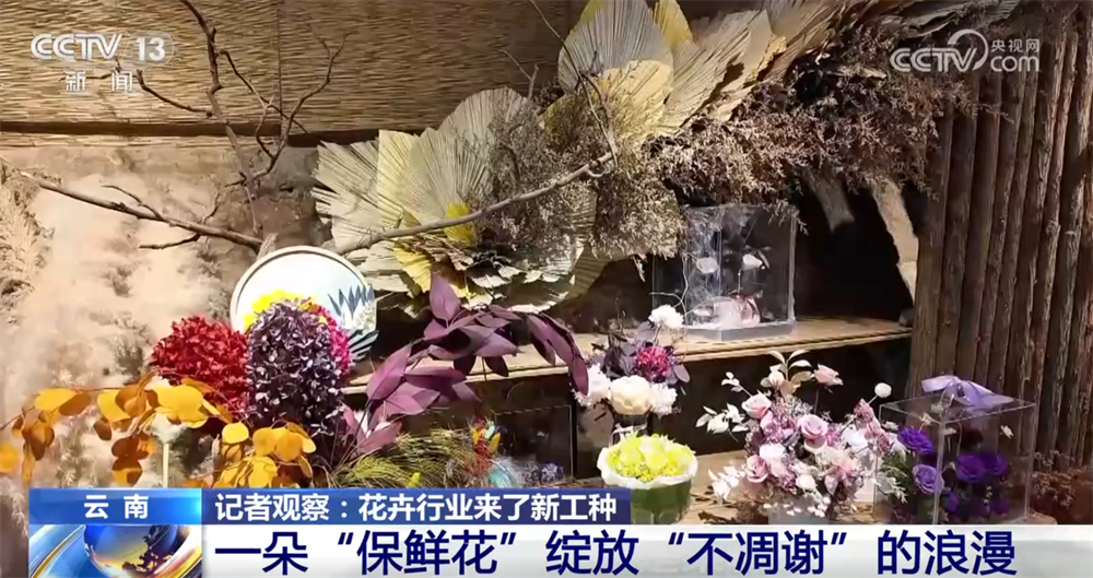 花期不到一周的鲜花经过高科技“冻龄”,可以开上3到5年。如今,云南已有20多种花材被加工成多样化的“保鲜花”产品和花卉工艺品,成为国际市场上脱颖而出的热销新品。随着新业态新消费的催化,“保鲜花”制作工这一新工种应运而生。